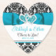 Diese personalisierten und romantischen Untersetzer für Hochzeitsfeiern eignen sich perfekt zum Empfang, Brautparty oder zum Probe-Dinner für Getränke oder Cocktails. Diese herzförmigen, schwarz-weißen Damast-Untersetzer sind sicher ein unvergesslicher Treffpunkt für Ihre Gäste und sind eine weitere Möglichkeit, um während Ihrer Hochzeitsfeiern einen zusammenhängenden Look behalten. Der Bereich der Herzform dieser Untersetzer hat ein türkisfarbenes Band und ein Bugbild, über dem sich die Herzensbilder befinden. Unter dem Band sind die Worte "Cheers to Liebe!" in schwarzer Schrift mit den Namen des glücklichen Ehepaares und dem Hochzeitstag in türkisblau und schwarz gedruckt. Wenn Sie weitere passende Artikel benötigen, schicken Sie bitte eine E-Mail an niteowlstudio@gmail.com und schauen Sie sich Ihre Spam-/Junk-Ordner an, um meine Antwort zu erhalten, oder benutzen Sie die Zazzle-Chat-Funktion, um mich zu kontaktieren.