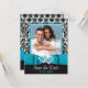 Wenn Sie die Liebe Ihres Lebens gefunden haben und gewollt haben, alle Ihre Familie und Freunde einzuladen, die Verbindung Ihres zwei Lebens und Herzens zu sehen, dann rettet diese schöne Fotovorlage die Dattelkarte in schwarz-weiß Damast mit den Herzen verbunden über einem aquamarinen oder türkisfarbenen Band und Bugabild über den Boden ist eine großartige Möglichkeit, Ihre bevorstehenden Nuptials anzukündigen. Die Vorderseite hat ein schwarz-weißes Damast-Hintergrundmuster um das Foto der Verlobung über dem Band, gerahmt in Türkis, Schwarz und Weiß. Die Wörter "Save the Date" und das Hochzeitsdatum werden unter dem Band auf schwarzem Hintergrund in Weiß und Türkisblau gedruckt. Die Rückseite hat das gleiche Design wie auf der Vorderseite, Ihre Hochzeitsdetails sind auf einem weißen Textbereich in Türkis und Schwarz gedruckt. Hochzeitswebsite und QR-Code, den Sie für sich selbst austauschen, sind ebenfalls enthalten, wenn Sie eine Hochzeitswebsite haben, auf der Sie Menschen durch einen QR-Code gewollt haben. Wenn Sie Hilfe benötigen oder stattdessen Save the Date einen Magneten gewollt haben, schreiben Sie bitte eine E-Mail an niteowlstudio@gmail.com oder nutzen Sie die Zazzle Chat Funktion, um in Touch zu kommen.