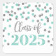 Klasse der 2025 Abschluss Aufkleber mit türkisfarbenem und silberfarbenem Konfetti-Muster mit modernem Stil.