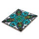 Dekorative spanische Fliese mit bunten Elementen im Türkis, im Grün, im Gelb und in der Orange. Symmetrischer Entwurf mit den Blumen- und Blattelementen.
