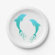 Türkis-springender Delphin mit Blasen-Pappteller Pappteller
