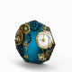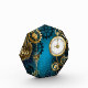 Türkis, strukturiert, Steampunkhintergrund mit Messing- und Goldgetrieben, Silberschlüssel und Uhr. Steampunkstil.