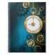 Türkis-Steampunkirche Hintergrund mit Gears Notizblock