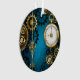 Türkis, strukturiert, Steampunkhintergrund mit Messing- und Goldgetrieben, Silberschlüssel und Uhr. Steampunkstil.