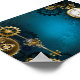 Türkis, strukturiert, Steampunkhintergrund mit Messing- und Goldgetrieben, Silberschlüssel und Uhr. Steampunkstil.