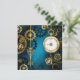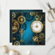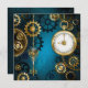 Türkis, strukturiert, Steampunkhintergrund mit Messing- und Goldgetrieben, Silberschlüssel und Uhr. Steampunkstil.