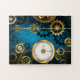 Türkis-Steampunkirche Hintergrund mit Gears Puzzle