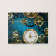 Türkis-Steampunkirche Hintergrund mit Gears Puzzle