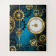 Türkis-Steampunkirche Hintergrund mit Gears Puzzle
