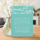 Wir laden Sie herzlich ein, Ihren 16. Geburtstag mit unseren sommerlichen Lichtern zu feiern. Die Beachy Chic 16 . Geburtstag Einladungen mit einem lebendigen, türkisfarbenen aquamarinen Hintergrund mit weißen Lichtern an der Decke und passenden weißen Schriftzeichen. Perfekt für 16 . Geburtstag Girls, die diesen ikonischen Blautöne Liebe!