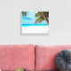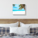 Der ruhige und friedliche Strand mit weißem Sand. Das Wasser ist ruhig und türkisblau, und es gibt einige Palmen zum Schatten. Die ideale Lage für Erholung und Entspannung.