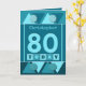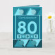 Geburtstagskarte. 80 heute, fügen Sie einen Namen und schreiben Sie Ihre Nachricht in. Türkisblau und türkisblau mit Flaschenverschluss-Formen und Dreiecken. Alles Gute zum Geburtstag.