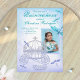 Lassen Sie Ihre Quinceañera-Gäste mit einer glänzenden Kutsche, umgeben von blauen und türkisfarbenen Libellen, willkommen. Die Aquarelltextur mit der Pferdekutsche des Glitzer wird mit passenden Einladungen, Rsvp-Karten, Umschlägen, Etiketten und Aufklebern schön aussehen. Fügen Sie einfach Ihr Foto hinzu und übertragen Sie dieses skurrile blaue Libellen- und Pferdekutschendesign auf andere Karten und Geschenke.