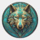 Türkis und Gold Wolf Runder Aufkleber