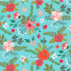 Vintage handgezeichnete Hütte chic Blume Muster Druckgewebe in Akzenten von Korallenrosa, türkisblau (aquamarin) und verbrannt orange.