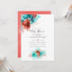 Türkisfarbene, korallenfarbene Rose und tropische Imitate Glitzer Blätterdusche mit eleganter Handschrift Typografie.