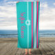 Türkisfarben und rosafarbene Streifen sind ein individuelles Badetuch. Einfach Text bearbeiten, um personalisieren!