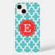 Türkis und Rot Modernes marokkanisches Monogramm Case-Mate iPhone Hülle