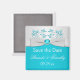 **** BITTE BEACHTEN SIE, dass das Band und die Juwelen gedruckte Bilder sind und nicht real sind. Diese türkisfarbene und silberne Blüte speichern Sie das Datum Magnet passt zur Hochzeitskollektion unten gezeigt.