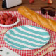 Maßgeschneiderte Party-Teller mit einem schicken, preppy nautical Stripe Muster. Klicken Sie auf Anpassen, um das Design mit Ihrem eigenen Text und Bildern zu personalisieren, um ein einzigartiges Design zu erstellen, das jedem Party-Dekor entspricht!