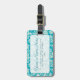 Eleganter Blumendamast in Weiß und Kachel türkisblau. Vollständig anpassbare Gepäckanhänger.
