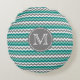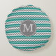 Türkis und Zickzack Zigzag Monogramm Rundes Kissen