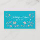 Diese romantisch-türkisfarbene oder aquamarin-blaublühende Hochzeitsszene-Platzkarte hat ein Bild eines Herzenspaares, das über einem türkisfarbenen Bandabbild steht, das über die gesamte Breite der Platzkarte verläuft. Türkisblau auf weißem Hintergrund ist umgeben von silbernen Blume und Weinreben über dem Band. Die Namen der Braut und des Bräutigams sowie das Hochzeitdatum werden auf der Rückseite der Platzkarte in Weiß mit silbernen Blume auf einem aquamarin blauen Hintergrund, der den Text umgibt, gedruckt.