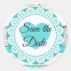 Aquamarine, türkisfarbene, weiß verwitterte, bedrückte Holz rustikalen Stil Hochzeit Save the Date Aufkleber.