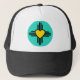 Ureinwohner-Zia-Sonnesymbol mit gelbem Herzen in der Mitte des Türkises.