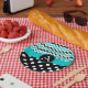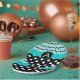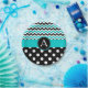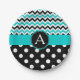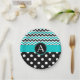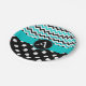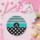 Monogrammentwurf mit Türkis, Zickzack Schwarzweiss-Muster und Schwarzweiss-Polkapunkten. Resizable Kreisrahmen für kundenspezifisches Anfangs oder entfernen es vollständig und fügen Text dem Türkisstreifen hinzu! PinkInkArt Vorlage!