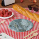 Türkisblau-Risse, graue blaue Marmorverkleidung Pappteller