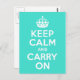 Türkis und weiß "Keep Calm and Carry On" moderne Version des klassischen Posters. Ein klassisches Design mit einer hellen, modernen Farbe. Typografisches Design auf einer Postkarte.