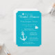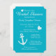 Elegante nautische Turquise blau-weiß Brautdusche Einladungen. Gewohntes Hochzeitsfest Party lädt mit kleinen weißen Herzen ein. Anpassen der Form. Benutzerdefinierte Hintergrundfarbe dh Aquablau. Schöner, stylischer Skripttext mit Vintagem Bootanker. Design zum Thema Seeschifffahrt Ideal für Strand und Hochzeiten in Urlaubsort