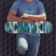 Mit diesem dynamischen Skateboard mit türkisfarbenen Wellen und einem hoppigen Surfbrett reiten Sie die Wellen. Dieses Design ist perfekt für Strandliebhaber und Surfer geeignet, um die Rohenergie rauer Wellen zu erfassen, die den Geist des Insellebens und der Abenteuer an der Küste widerspiegeln. Ideal für diejenigen, die den Nervenkitzel des Ozeans lieben, bringt dieses Brett den Power und die Schönheit des Meeres zu Ihrer Fahrt.