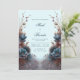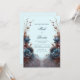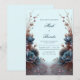 Laden Sie Ihre Gäste zu einem Ereignis von auffallender, moderner Eleganz mit dieser einzigartig symmetrischen botanischen Komposition ein. Das Design zeigt eine große, samtige Tealblaue Blüte in der Mitte der Anordnung, die durch metallisch kupfer- und bronzefarbene, fedrige Blätter schön kontrastiert wird. Ein zarter, gebogener Zweig mit kleinen lila Blütenknospen verleiht der ruhigen, hellblauen Hintergrundverlauf eine gewisse Höhe und Bewegung. Diese Hochzeitseinladung ist die erste Wahl für eine moderne Winterzeremonie, ein anspruchsvolles dunkles botanisches Ereignis oder eine stilvolle zeitgenössische Feier. Sie sorgt dafür, dass Ihre Veranstaltungsdetails mit einem Sinn für künstlerisches Gleichgewicht und hochdramatischer Wirkung präsentiert werden, die Ihre Gäste vom Moment an, in dem sie den Umschlag öffnen, in ihren Bann ziehen wird