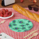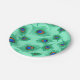 Türkisblaue Pfauenfedern auf dem Wasser Pappteller