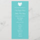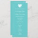 Elegantes türkisblaues und weißes Hochzeitsprogramm mit rustikalem Herzen. Klassische leere Vorlage mit stylischer Schriftzeichen. Teil des wunderschönen passenden romantischen Liebe Thema Sammlung Set. Trendy inspirierende Schreibwaren Design für klassische Braut und Bräutigam Heiraten. Umfasst individuelle Namen, Datum, Ort, Reihenfolge der Zeremonie und Hochzeitsfeier. Hübsches Heiratszubehör und Zubehör für die Planung Ihrer Hochzeit, Brautparty, Verlobung und vieles mehr. Auch für Hochzeitsfeier zum Thema Strand angenehm.