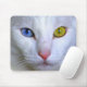 Die all-weiße türkische Angora ist eine schöne Katze mit weichem weißem Pelz. Mis-zusammengebrachte Augen ist ein allgemeines Merkmal unter türkischen Angorakatzen.
