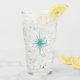 Dieser fabelhafte, moderne Glastumbler aus der Mitte des Jahrhunderts besticht durch eine türkisblaue atomare Sternexplosion. Dies wird eine fantastische Ergänzung zu Ihrem mittleren Mod-Bar-Karren, Tisch-Einstellung oder Küchenregal!