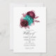Trendy Türkis - aquamarine und bordeauxrote Hochzeitseinladung. Ideal für jede Art von Thema oder Gartenhochzeit.