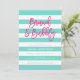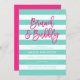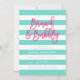 Chic Bridal Brunch Einladung mit den Worten "Brunch & Bubbly" in trendigem rosa Pinselskript vor türkisfarbenem und weißem Streifen Hintergrund. Die Karte hat eine passende rosa Rückseite. Karo andere passende Elemente hier https://www.zazzle.com/collections/119250194970828530?rf=238364477188679314 Personalisieren Sie sie durch Ersetzen des Platzhaltertextes. Für weitere Optionen, wie zum Beispiel den Schriftart zu ändern und ihn zu vergrößern oder zu verändern, klicken Sie auf den Button "Anpassen". *Bitte beachten Sie, dass das Zazzle-Wasserzeichen, das in der Zoomvorschau angezeigt wird, NICHT auf dem gedruckten Endprodukt erscheint. © Rosewood and Citrus