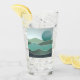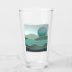 Diese Fantasy-Landschaft ist in schönen strukturierten Schichten und Schattierungen von türkis und aqua mit einer Sonne und Hügeln und Bergen.