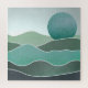 Diese Fantasy-Landschaft ist in schönen strukturierten Schichten und Schattierungen von türkis und aqua mit einer Sonne und Hügeln und Bergen.