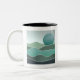 Diese Fantasy-Landschaft ist in schönen strukturierten Schichten und Schattierungen von türkis und aqua mit einer Sonne und Hügeln und Bergen.