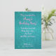 Birthday Einladungsvorlage mit Imitaten türkis/aquamarin/aqua Glitzer Hintergrund sehr funkelnd, glänzend und gürnig mit rosa Schriftart