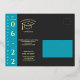 Laden Sie Familie, Freunde und Mentoren ein, mit dieser auffälligen Abschlussfeier-Postkarte in kräftigem Türkis, weichem Creme und schickem Charcoal zu feiern. Die Vorderseite zeigt den vertikalen Text "GRADUATION PARTY", Datum, Uhrzeit und Tag in Luxus-Goldfolie auf einem türkisen Feld. Die Rückseite enthält ein Abschlussmützen-Icon, den Namen des Absolventen, Details zum Partyort, die RSVP-Frist und Kontaktinformationen – alles in Luxus-Goldfolie auf Charcoal. Ein praktisches Postkartenformat – kein Umschlag erforderlich, leicht zu versenden. Ein farbenfrohes und modernes Design mit unverwechselbarem Stil. Vollständig anpassbar. Teil einer kompletten Abschluss-Kollektion, die Einladungen, Anzeigen, Dankeskarten und Dekorationen umfasst. Für Design-Unterstützung senden Sie bitte eine