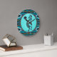 Brighten Sie Ihr Zimmer mit dieser einzigartigen "One a Kind" Türkis Kokopelli Wall Clock! Es besitzt ein südwesttürkisfarbenes Kokopelli, das Flute spielt und unter der Sonne auf einem türkisfarbenen Hintergrund tanzt...Umgeben von einer Südwestgrenze in Türkis, Weiß, Gold und Rost. Original Art Design von Künstler Kerry Miller.