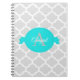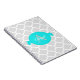 Erstellen Sie ein einzigartiges und freundliches Journal mit einem Turquoise Quatrefolie Personalisierten Spiral Foto Notebook. Das Notebook-Design verfügt über einen einfachen Hintergrund mit Quarrefolien und ein extravagantes Emblem, das mit Ihrem Namen und Monogramm personalisiert werden kann. Zusätzliche Geschenkartikel in diesem Design sowie eine Vielzahl von Farben.
