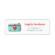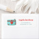 Einfaches Rücksendeetikett für Fotogeschäfte und Freiberufler in Rot und Türkis. Illustriert und gestaltet von Patricia Alvarez.