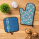 Türkise Ruhepause Muster Ofenhandschuh & Topflappen-Set